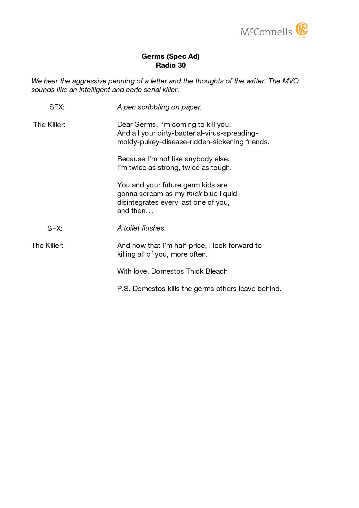Again during the recession days, this ad never made it but someday I'd like to do something similar. Dettol, are you listening?