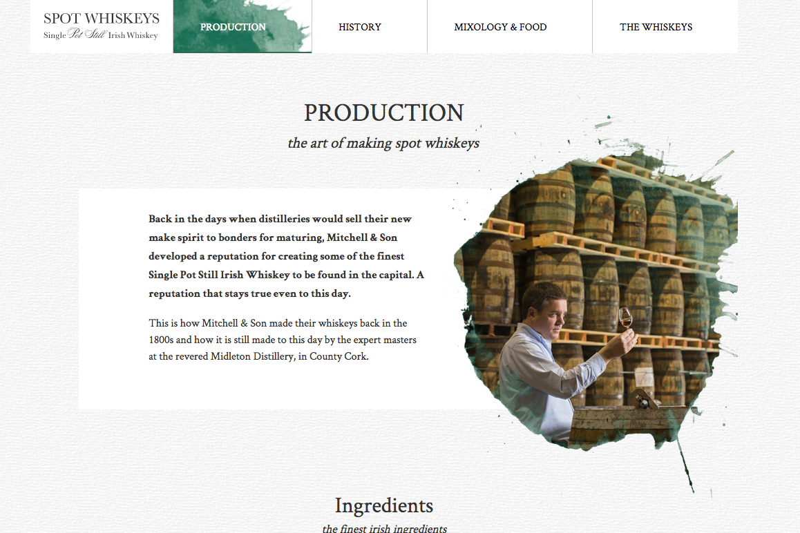 Here's a few snippets from the new Spot Whiskeys' website (www.spotwhiskey.com) which I've helped to write for ZOO Digital; it's a site that's rich in history and colourful stories, mixed with modern food pairings and cocktails – a true reflection of the whiskeys themselves, both back in the day and today.